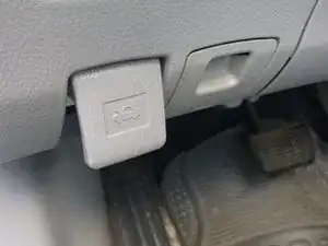 Найдите рычаг для открытия капота. Он расположен внизу слева от сиденья водителя.