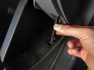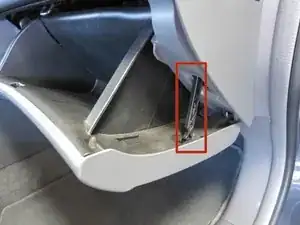 Найдите защёлку амортизатора бардачка с правой стороны бардачка.