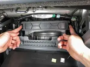 Установите обратно лоток для фильтра салона и установите бардачок в обратном порядке, как в предыдущих шагах.