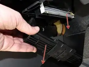 Теперь, имея больше места для удаления, сдвиньте две пластиковые защелки вместе.