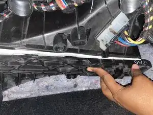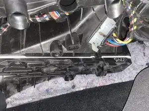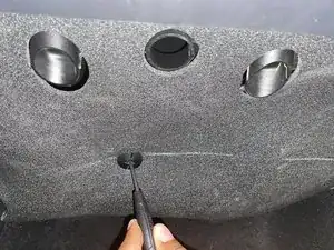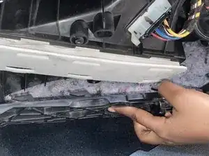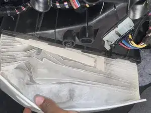 После открытия двери найдите корпус вентилятора, который расположен ниже перчаточного ящика и за черной поролоновой крышкой.