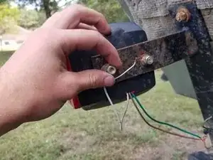 Снимите белый провод заземления с болтов, проходящих через кронштейн.
