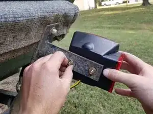Используйте трещоточный ключ, чтобы снять оба шестигранных гайки с болтов, крепящих фонарь к кронштейну.