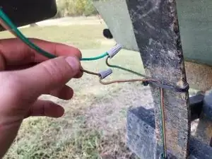 Наденьте гайку для проводов и закрутите её на скрученные коричневые провода. То же самое сделайте для скрученных зелёных проводов.