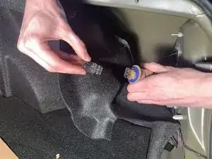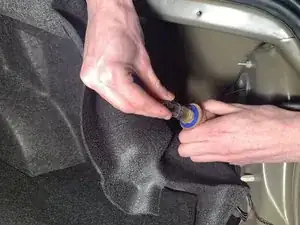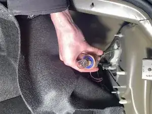 Снутри багажника снимите боковую панель, чтобы получить доступ к лампочке тормоза