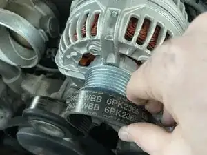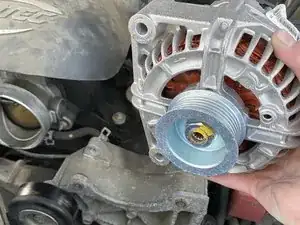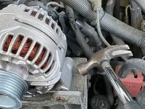 Генератор может потребовать небольшого усилия для снятия с кронштейна, поэтому используйте молоток или монтировку, чтобы помочь в этом шаге.