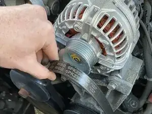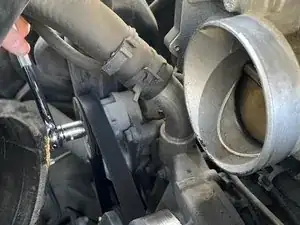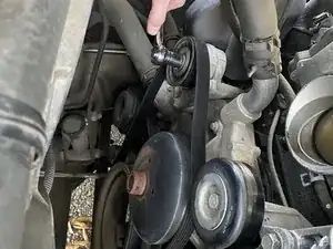 Снимите ремень, используя торцевую головку на 15 мм на натяжном ролике.