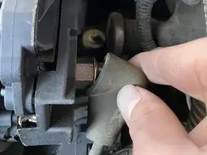 Снимите резиновый защитный кожух с гайки и болта на задней части генератора.