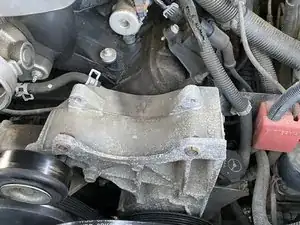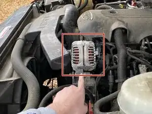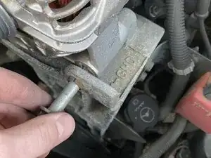 Когда новый генератор установлен, вставьте два болта обратно через соответствующие отверстия на передней части кронштейна.