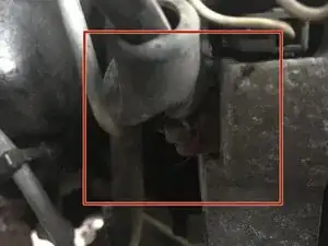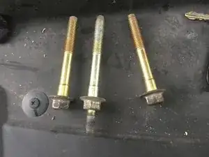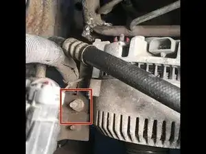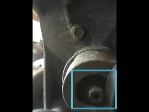 Вот три болта, которые держат генератор на месте. Центральный болт отличается, так как он также является точкой крепления для части системы кондиционирования.