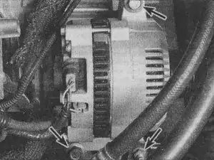 После снятия болтов генератор можно просто вынуть из моторного отсека.