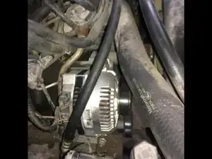 Это единственная часть, которая может быть сложной. Снятие поликлинового ремня требует оттянуть пружинный натяжитель ремня до состояния, когда он больше не оказывает натяжения на ремень. Для этого требуется Torx T-50, которого у меня не было.