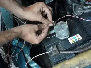 Возьмите маленькую лампочку с патроном и подсоедините провод от контакта 12 В на электрическом разъёме к одному из двух проводов лампочки и патрона.