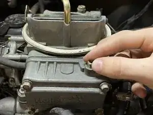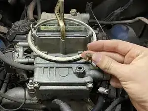 Удалите винт, прикрепленный к сборке воздушного фильтра. Извлеките блок воздушного фильтра.