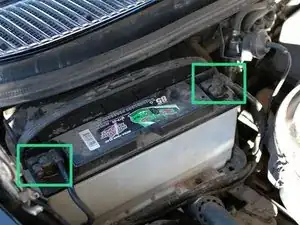 Начните с отключения обоих клемм аккумулятора, начиная с отрицательной (-), которая идет всего на несколько сантиметров к болту, прикрепляющему другой конец к кузову автомобиля.
