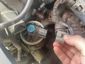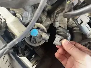 Нажмите на защёлку разъёма жгута проводов и потяните его от клапана EGR, чтобы отсоединить.