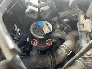 Используйте трещотку с головкой на 12 мм, чтобы открутить гайки, крепящие клапан EGR к двигателю.