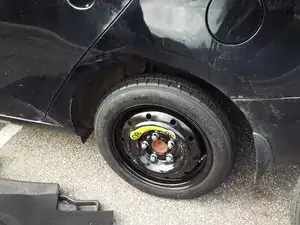 Поворачивая против часовой стрелки, открутите и снимите пластиковый фиксатор в центре запасного колеса.