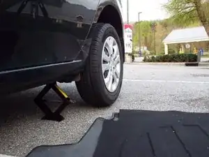 Установите домкрат под опорную пластину домкрата под соответствующим колесом.