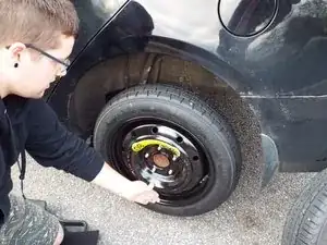 Установите запасное колесо на ступицу.