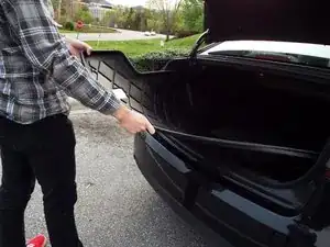 Откройте багажник. У большинства моделей 2013 года нет кнопки открытия багажника на пульте. Чтобы открыть багажник, удерживайте кнопку разблокировки.
