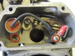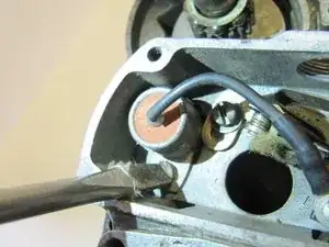 Найдите два винта на задней части магнето, которые удерживают конденсатор на месте.
