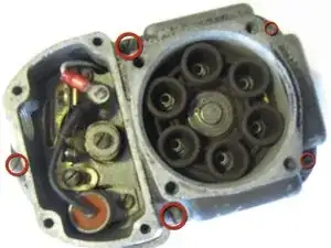 Используйте отвертку с плоским лезвием #2, чтобы удалить пять винтов на корпусе магнето.
