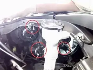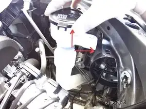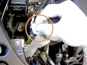 Чтобы получить больше места для работы с той стороны, где расположен бачок омывателя лобового стекла, нужно временно переместить его сопло.