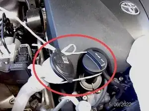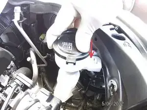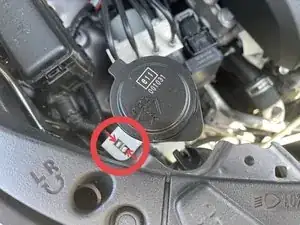 Используйте пластиковый хомут, чтобы закрепить сопло бачка на крышке маслозаливной горловины.