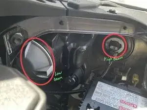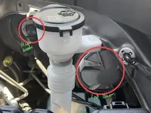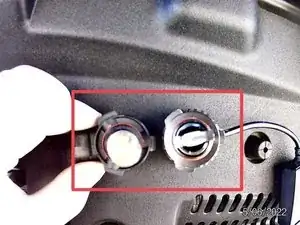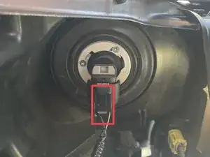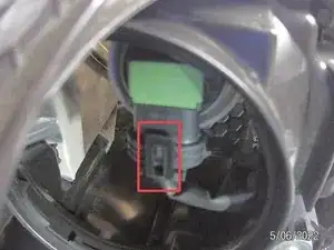 Найдите электрический разъём дальнего света, подключённый к лампе.