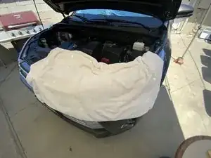 После того как капот открыт, накройте рабочую зону полотенцем.