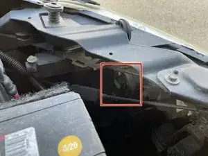 Разъём головного света расположен вдоль внутреннего края капота.