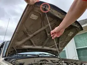 Вставьте металлическую палку, чтобы зафиксировать капот на месте.