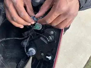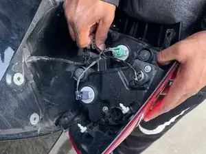 Поверните патрон стоп-сигнала против часовой стрелки и осторожно вытащите его, стараясь не повредить провода.