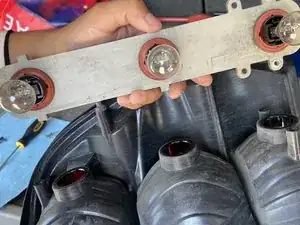 Удалите три винта, которые крепят лампы на месте: один сверху и два снизу с помощью отвертки Phillips #0.