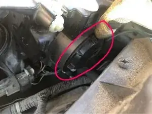 Найдите крышку фары (черная, круглая), которую необходимо снять.