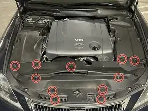 В этом руководстве описаны шаги, необходимые для замены лампы ближнего света в Lexus IS250 2006–2013 годов выпуска.