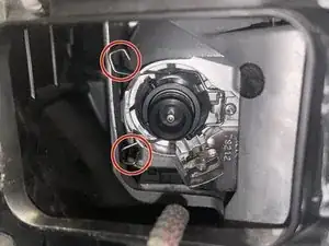 Сожмите металлические зажимы внутрь, чтобы освободить лампу фары.