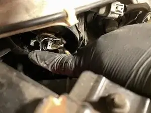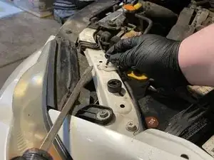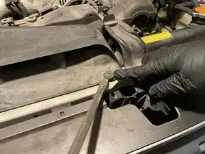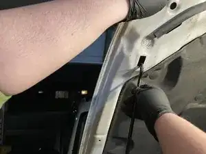 Возьмите опорный стержень капота и вставьте его в отверстие с пассажирской стороны, чтобы зафиксировать капот в открытом положении.