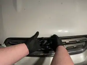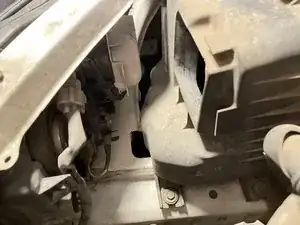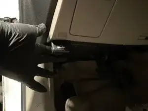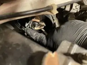 Снимите пластиковые защёлки, крепящие воздушный канал с пассажирской стороны, поддев плоскую отвёртку под головку защёлки, а затем потянув защёлку вверх.