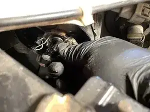 Сдвиньте рычаг под капотом влево.