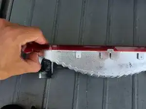 Используйте плоскую отвертку, чтобы поддеть крепление стоп-сигнала с обеих сторон и вынуть чёрные пластиковые фиксаторы.
