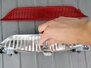 Отщёлкните красный кожух лампы от точек крепления с передней левой и передней правой сторон.