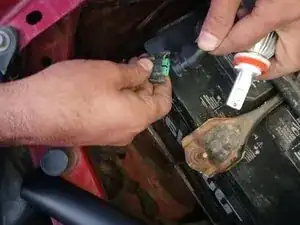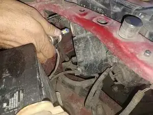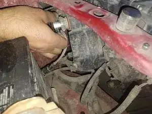 Чтобы найти правую лампу дальнего света, смотрите между внутренней частью правой фары и аккумулятором автомобиля.