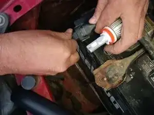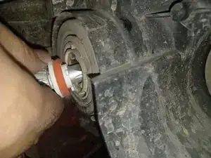 Теперь, когда у нас есть доступ к лампе дальнего света, можно приступать к замене. Первый шаг — извлечь старую лампу из её патрона.