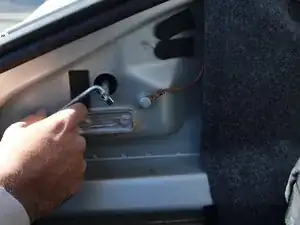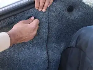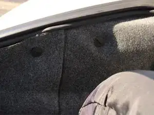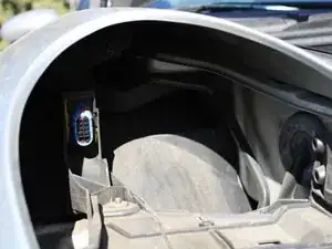 Загляните внутрь боковой панели переднего багажника с той стороны, где находится фарa, которую вы собираетесь заменить.