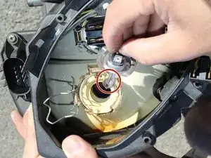 Аккуратно выньте старую лампу и установите новую лампу H7 или H1, ориентируя колбу в сторону отверстия для установки.