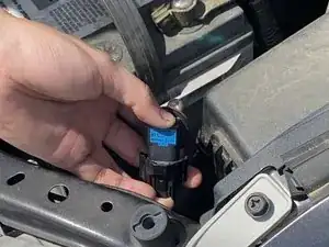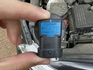 Найдите лампу фары изнутри капота и возьмитесь за лампу.