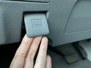 Вытащите рычаг открывания капота, расположенный внизу слева от рулевого колеса.