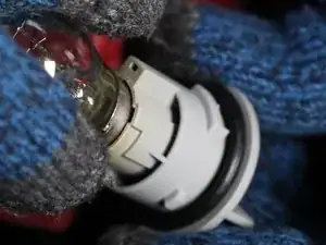 Выньте лампу из серого патрона, нажимая вниз и поворачивая против часовой стрелки.